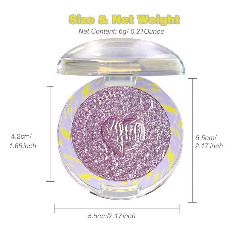 Item Type: Sparkly Highlighter/ Illuminator for Face/body Texture: Cream-to-Powder Color: 03 Aurora Purple Finish: Glitter Sparkling Suitable for: All Skin Tones Net Content: 6g/0.21Ounce