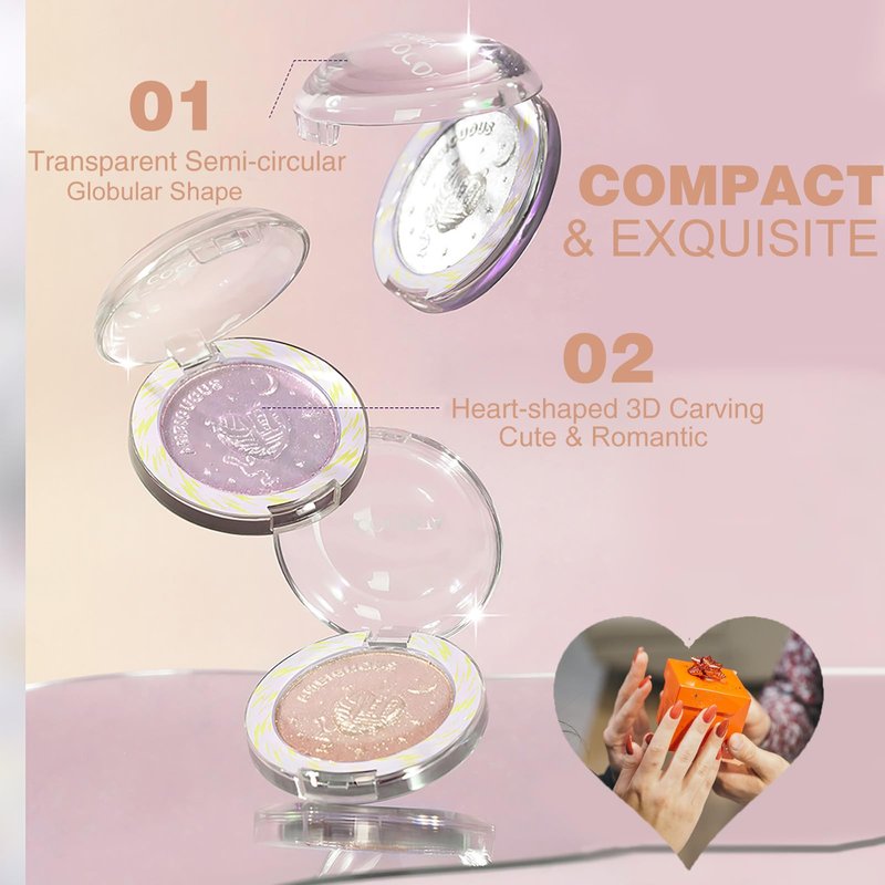 - 【 Ideal for Gifting】This Glitter highlighter Powder Palette boasts a stunning 3D heart-shaped engraving and a transparent semi-circuar globular shaped design making it a beautiful addition to any makeup collection. It's also an ideal gift for yourself or friends.