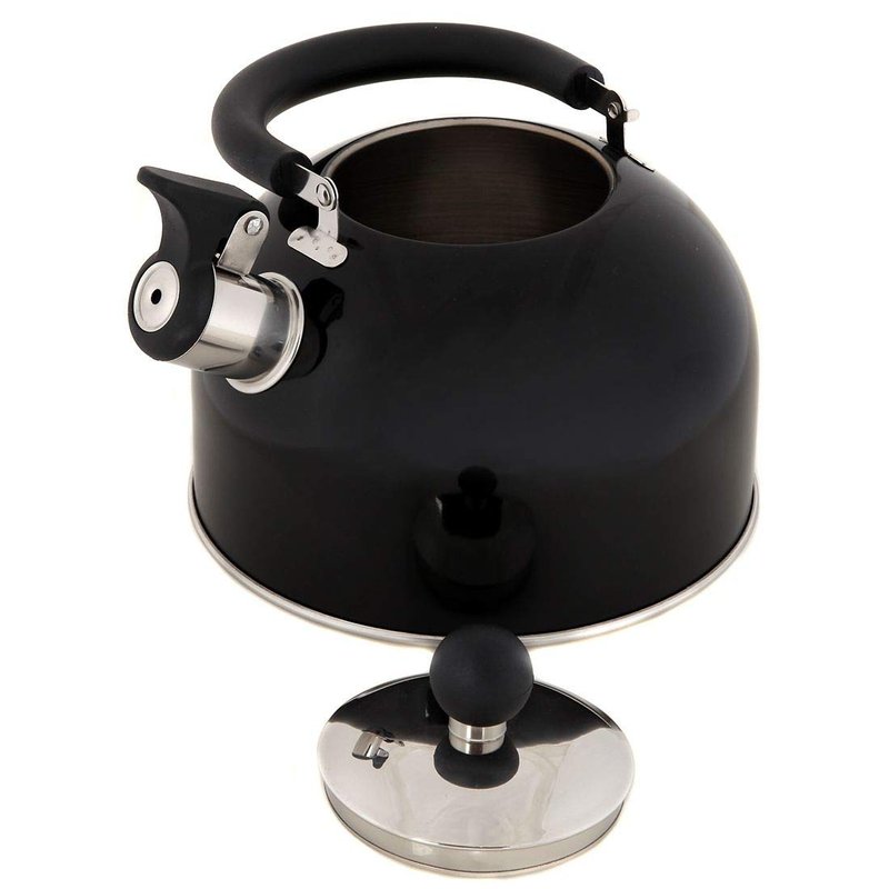 Lily's Home 2 Quart Stainless Steel Whistling Tea Kettle, the Perfect Stovetop Tea and Water Boilers for Your Home, Dorm, Condo or Apartment. (Black)