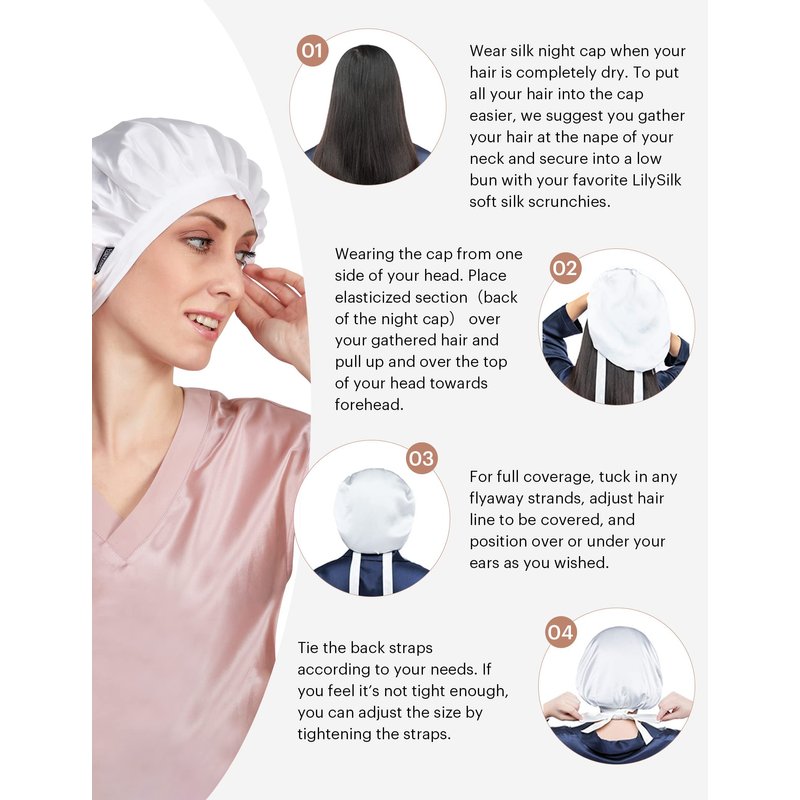 Why Lilysilk Silk Sleep Cap? - Made with soft and smooth silk material. - Reduces your bed head and stops your hair from drying out. - Allows your expensive hairstyles to glide over the pillow and retain their shape. - Aids blood circulation and digestion.