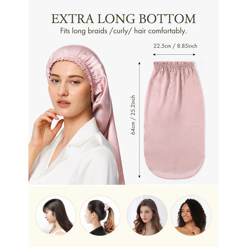 - HAIR PROTECTION: The large silk sleeping cap for long hair can maximally maintain the moisture of your hair, not only can play the increase the luster of the hair, elastic functions, but also can prevent the bifurcate or break, and prevents hair loss as well.