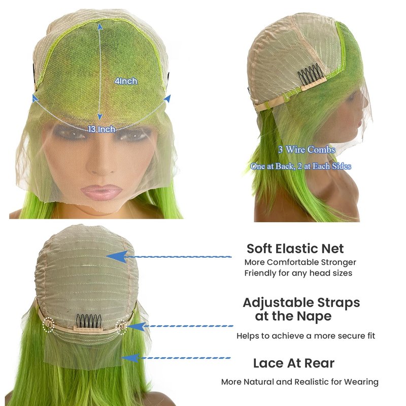 - Color: #13x4-HD Lime Bob Wig