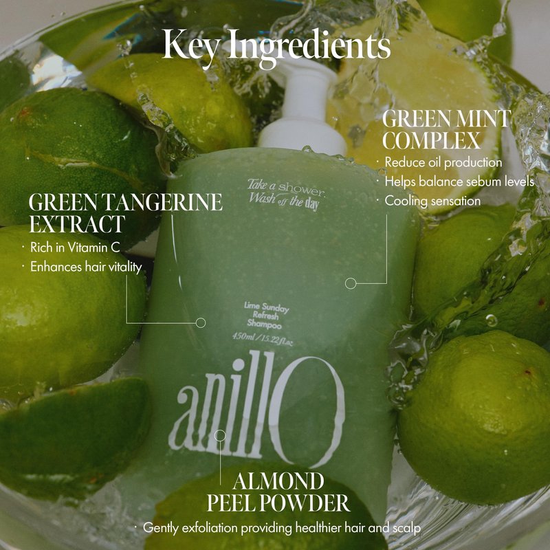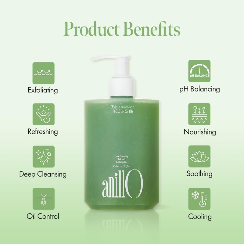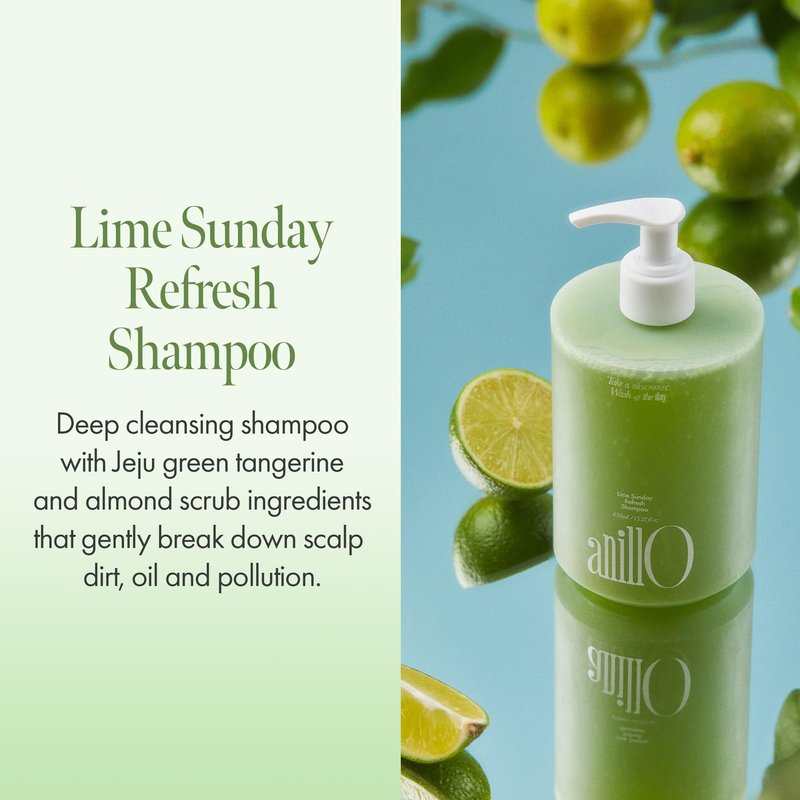 ANILLO Lime Sunday Refresh Shampoo 450ml / 15.22 fl.Oz, Vegan Haircare, Daily Shampoo with Green Tangerine Extract and Almond Powder for Deep Cleansing Oily Scalp, Free from Silicone, Sulfate, Paraben