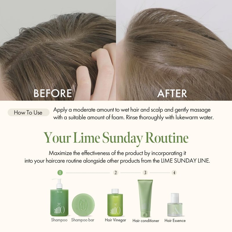 Lime Sunday Refresh Shampoo with Vitamin C, Green Mint, Almond Powder for Gentle Exfoliation and Deep Cleansing Oily Scalp, Lime Citrus Scent, Silicone, Sulfate & Paraben Free (450ml / 15.22 fl.Oz)