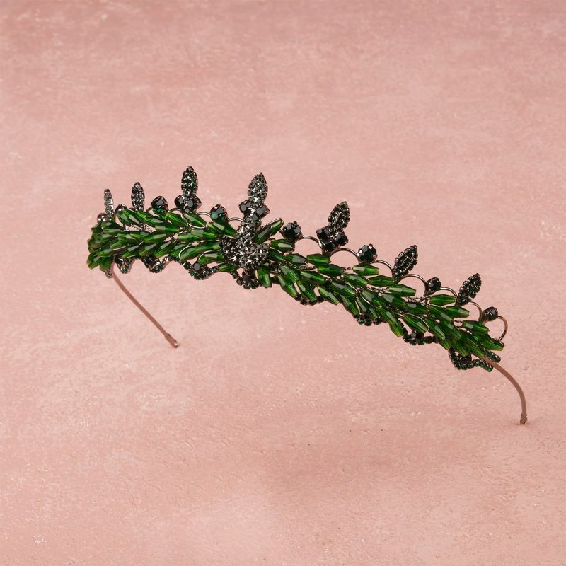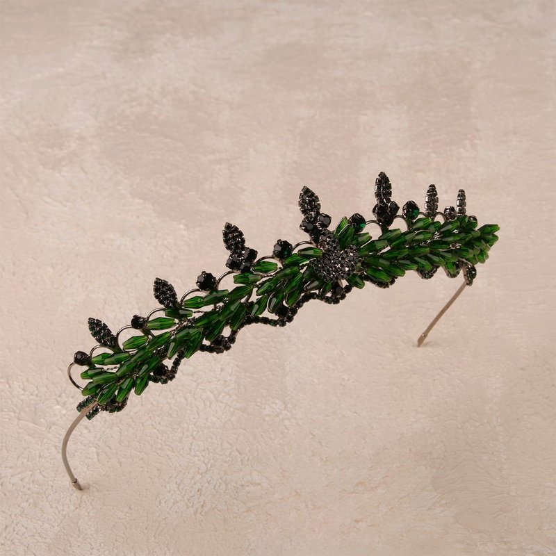 LIMELIA Women's Tiara - Crown for Henna Wedding Party | Glitter Hair Accessories for Bridal Birthday Pageant Prom Halloween Cos-play Costume Christmas Party, Princess Crowns | Crystal Glass Beads - Green