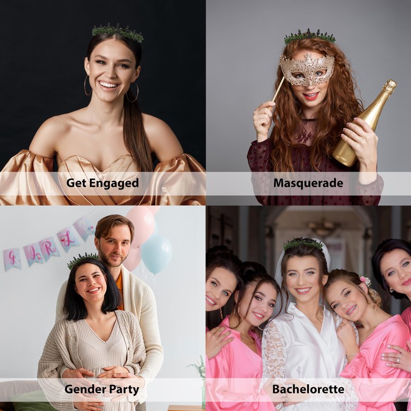 - π OCCASION: Our sparkling headpiece is versatile and perfect for a variety of occasions, including weddings, halloween costumes, proms, henna, hen party, pageants, birthdays, gifts, stage productions, photography props, and any other special events.