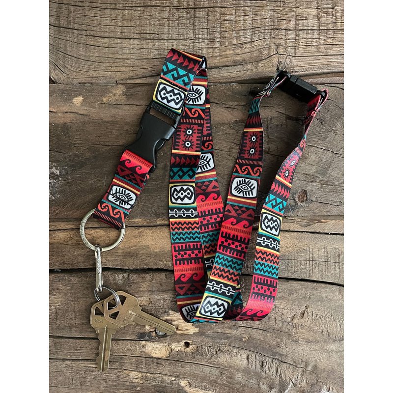 - Our Wayfinder western lanyard was inspired by western tribal designs and features a strong red color with colorful accents. Designed in the USA by Limeloot.