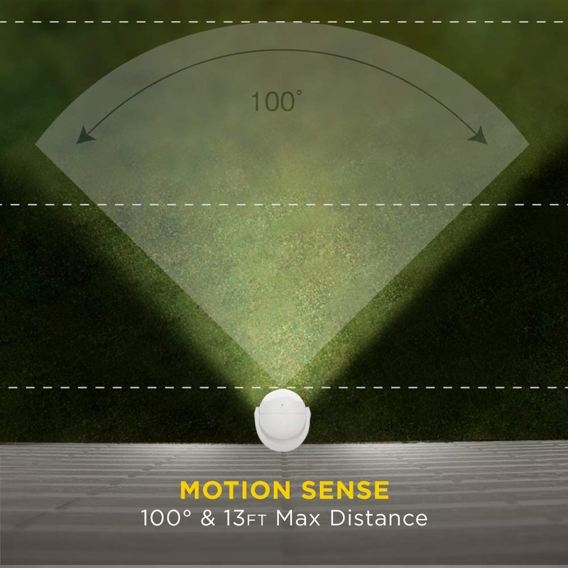 - MOTIONSENSE TECHNOLOGY - The 13ft detectable range and 100-degree field-of-view detects motion in dark environments. Utilize the motion light with a 20-second auto shut-off or switch to the always-on mode where additional light is needed walking the dog, during a party, repair, or DIY home improvement project!