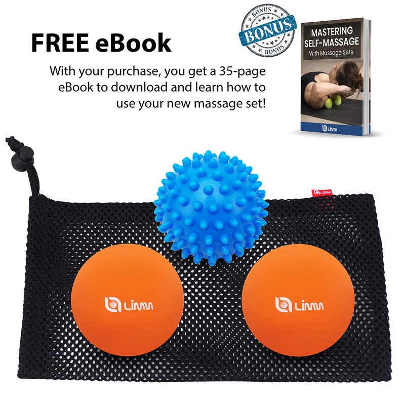 A set includes: 2 hard rubber balls of 2.5 inches of diameter1 spiky ball of 1 2.8 inches of diameter1 large mesh carry bag1 medium mesh bag (to make the peanut)Instructions manualWHY USE MASSAGE BALLS?There are plenty of health-related reasons why you need to use them.You can ease sore muscles, deal with plantar fasciitis, and can use them during post physical workouts.They also serve as a perfect tool to roll away deep muscle knots.They help increase blood circulation which is beneficial to help relieve tight muscle areas.The ultra-firmness of the massage therapy ball has point massage impacts without pain on your body. WHAT IS LIMM THERAPY MASSAGE BALL?The Limm Therapy Massage Balls Set is the ultimate personal massage tool which rolls away knots and tension in your back, shoulders, neck, hips, arms, legs, buttocks, thighs, and feet. This is perfect for all areas of the body. It has a lot of health benefits that include:✔ Point Therapy ✔ Myofascial Release ✔ Relieved Muscle Knots and Tight Muscles ✔ Recovery and Rejuvenation of Sore Muscles ✔ Eased Stress and Tension ✔ Alleviation of Cramps ✔ Normalized Blood Flow and Increased Flexibility ✔ Perfect for Yoga Exercise and TherapySPECIAL BONUS Every package comes with a spiky therapeutic ball that is unique and fit for massage therapies. Also, the set is portable: the included mesh bag allows you to carry all balls together or to create a peanut and increase the massage options.Click on Add to Cart right now and enjoy this durable, tested, and comfortable therapy ball set.