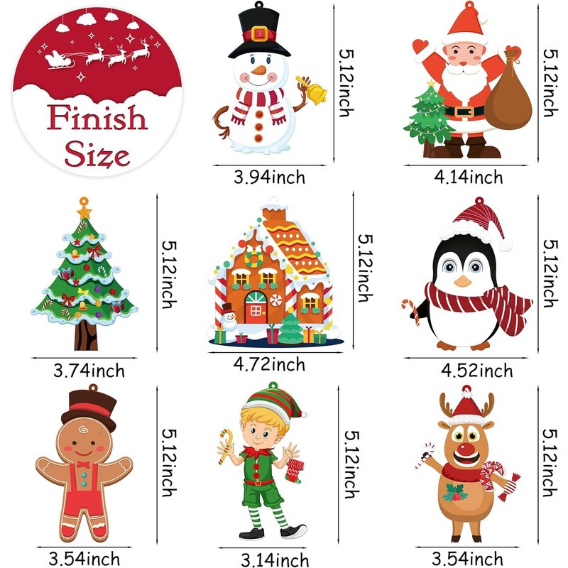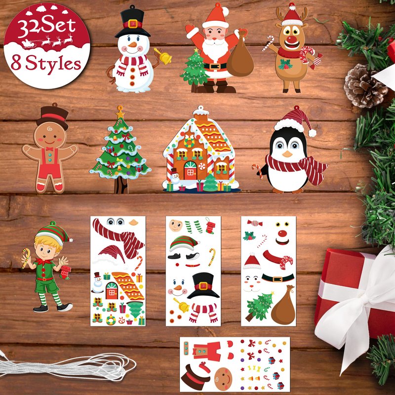 - CHRISTMAS ORNAMENT CRAFTS KIT FOR KIDS - Package includes 32 sets of Christmas craft ornament, including 8 different Christmas pattern. With a variety of matching stickers, children can use their imagination to create their own Christmas ornament.The package also includes hanging ropes so kids can hang the Christmas crafts on the Christmas tree or anywhere else they want to hang them