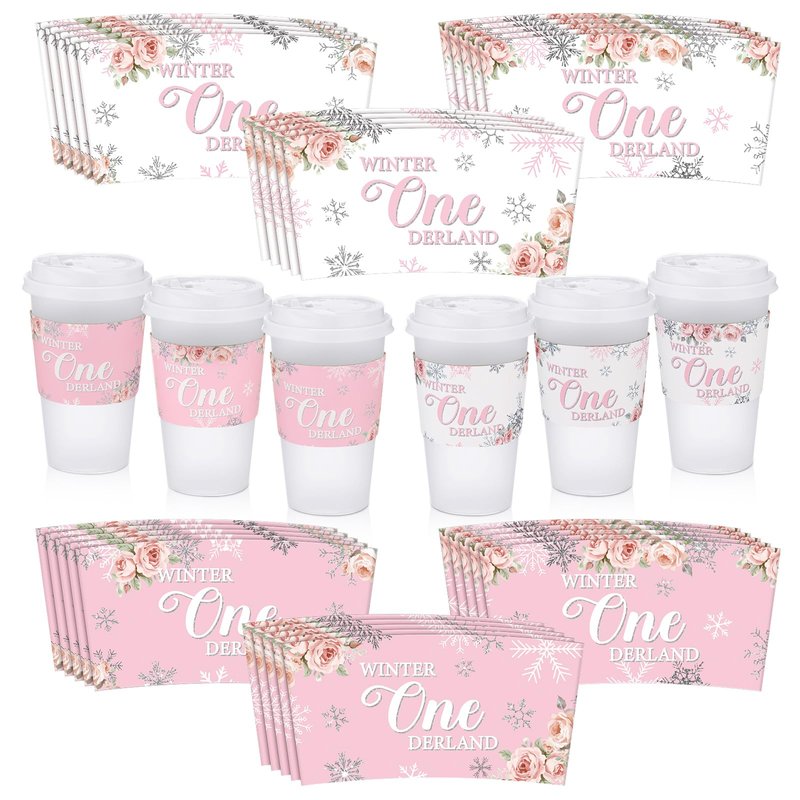 - Exquisite Design: these winter onederland coffee sleeves disposable are designed with first birthday party themes, with adorable pink color, these coffee sleeves are cute and eye catching, add charms to your beverage