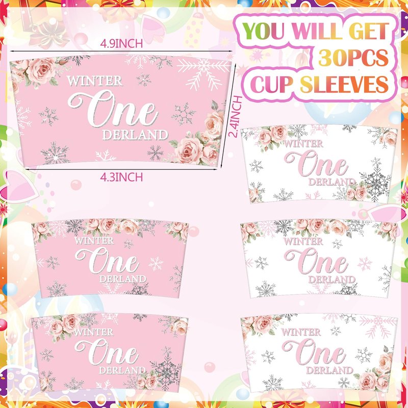 Lincia 30 Pcs Winter Onederland 1st Birthday Girl Pink Coffee Cup Sleeves Disposable Winter Onederland Birthday Decorations Party Supplies Winter Onederland Baby Shower Decoration for Girl