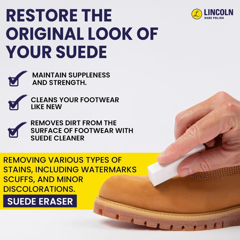 - COMPLETE SUEDE CLEANING KIT- 4 Piece This Suede and nubuck cleaning kit includes an 8oz bottle of Lincoln E-Z Cleaner, 1 brass suede brush, 1 nylon suede brush, and 1 suede and nubuck cleaning eraser.