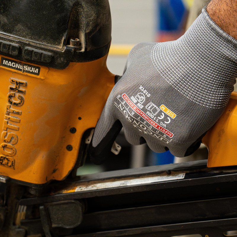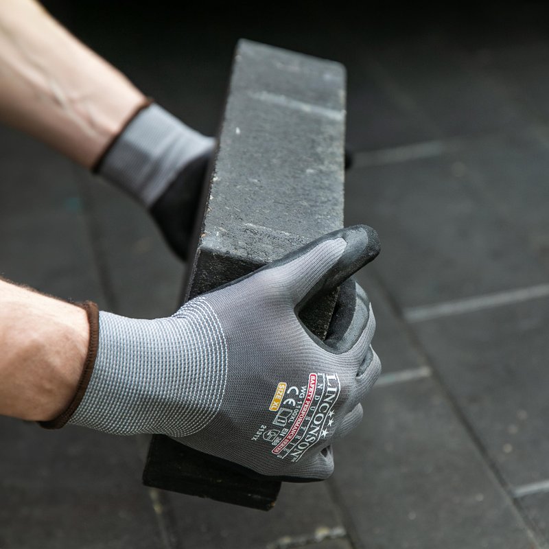 Lightweight 13-gauge nylon gloves with latex foam coating. Offering 360° degrees of breathability, extensively reducing hand fatigue on a long working day. Linconson PU gloves also offer a high level of dexterity and flexibility. This facilitates the ability to work with small parts and components without having to take the gloves off. Presented with a durable knit wrist design, protecting the hands from any dirt or debris that may come into contact with the gloves.