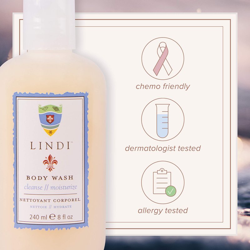 Lindi Skin Body Wash for Dry, Itchy & Sensitive Skin - Gentle, Non-Foaming Formula That Hydrates and Refreshes Your Body and Scalp - Relieves Painful Effects of Radiation Burn & Chemo Rash (8 fl oz)