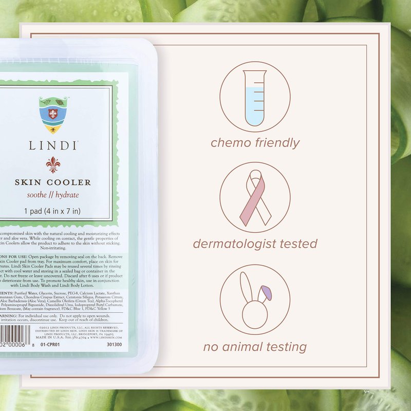 - RADIATION SKIN RELIEF: The Lindi Skin Cooler Pad was specially designed to help sooth and relieve radiation burns and other types of compromised skin.