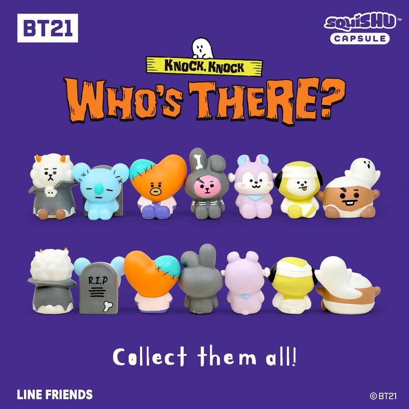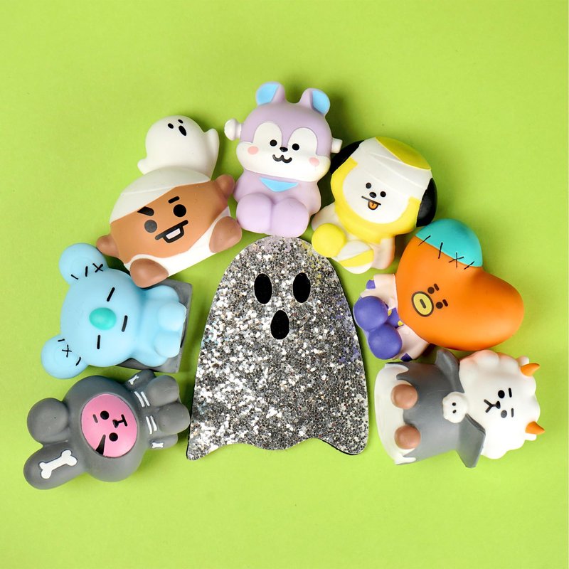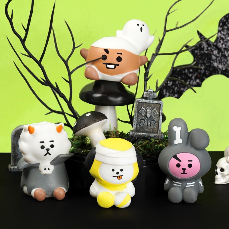 - OFFICIALLY LICENSED SPECIAL HALLOWEEN SERIES BLIND BOX TOYS -️ Officially licensed BT21 squishy toys; detailed and adorable designs featuring KOYA, RJ, SHOOKY, MANG, CHIMMY, TATA and COOKY in adorable Halloween costumes!