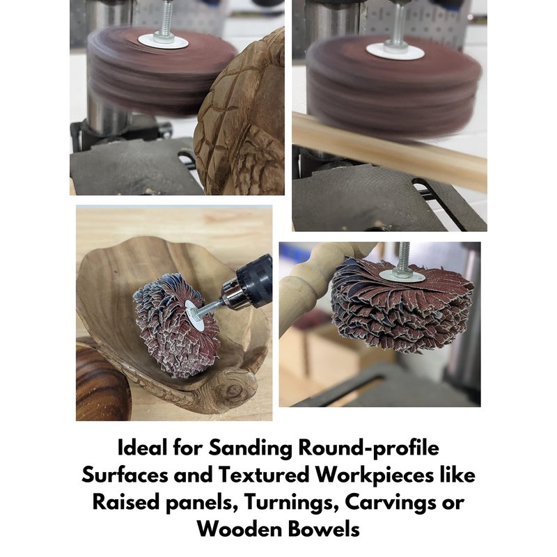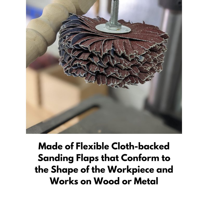 - Made of flexible cloth-backed sanding flaps that conforms to the shape of the work piece and works on Wood or Metal
