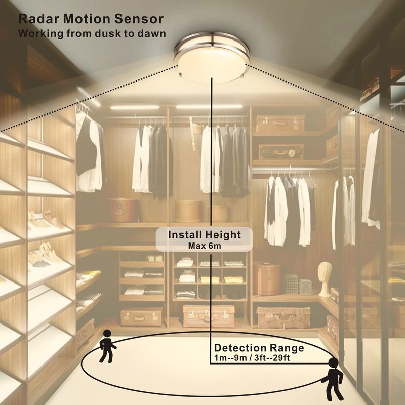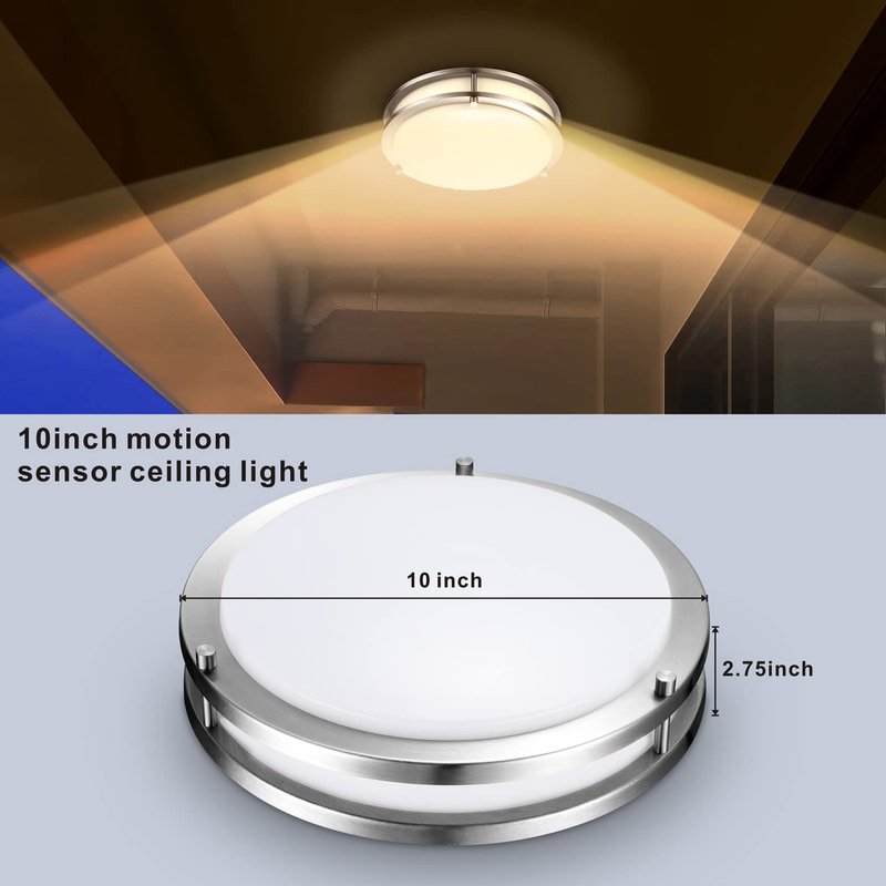 - Motion Activated: 10inch 16W 1600lumen 3000K motion sensor flush mount ceiling light has a cool high-quality design, bright and tasteful look, create comfortable lighting environment.