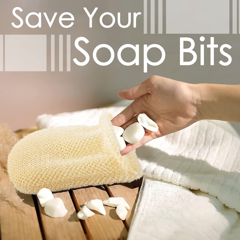 - Set of 3 soap holder bag for the shower, enough to meet your daily use, but also to share with your friends, family, etc. - Nylon sponge bags are light in weight, easy to store, and don't take up much space in your home. - Exfoliating body scrubber is washable and reusable. After each use, just hang in the shower to dry. When the soap in the pouch has been used up, rinse well.