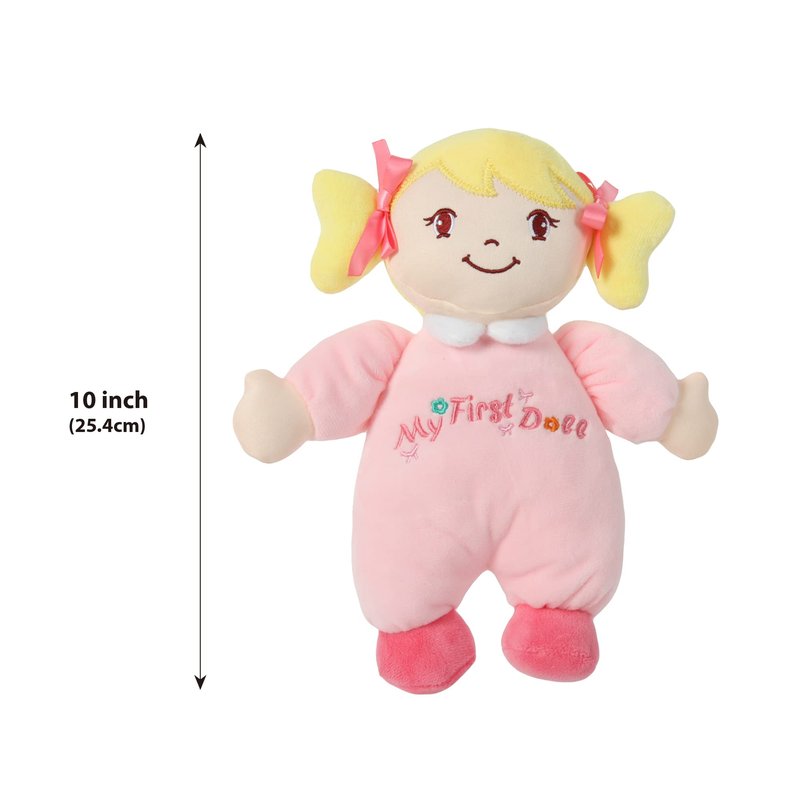 Linzy Plush Soft Plush Baby Doll Blond Hair My First Doll Safe for All Ages Mi Primera Muñeca Stuffed Plush Doll 10''