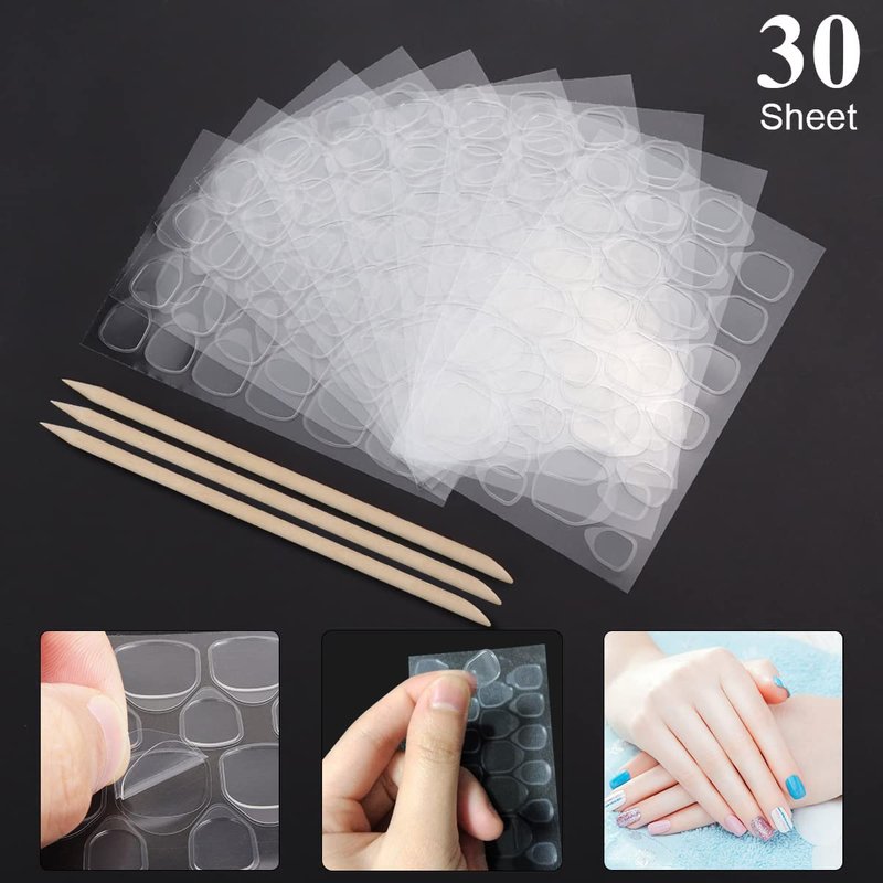 - 💅Multiple Sizes: This is a jelly glue nail sticker, including 30 Sheets Double Sided Nail Adhesive (24 tabs per sheet) can fit most nails and 1pcs Manicure Stick. And each sheet have 12 different sizes, so you can choose the most suitable size for you and share with your friends and family.
