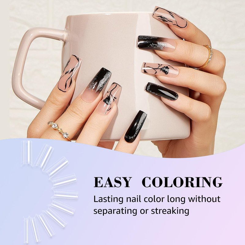 - 💝Nail Tips No C Curve Fit Nail Bed: Long nail tips design no c curve and half cover, the back edge fit perfectly on the nails, just like your natural nails. The acrylic material solves the problem of fragile nails, even if it is twisted, it can be restored to new without leaving white marks.