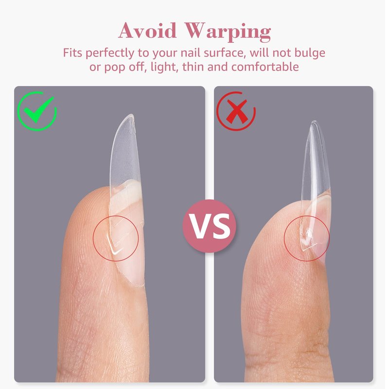 - Avoid Warping: The no c curve nail tips's cutting angle design significantly improves the fit with the edge of the nail beds, making it easier to use compared to traditional nail tips short. In addition, there is reducing the need for excessive buffing after application, thus saving yours from many subsequent tedious processes.