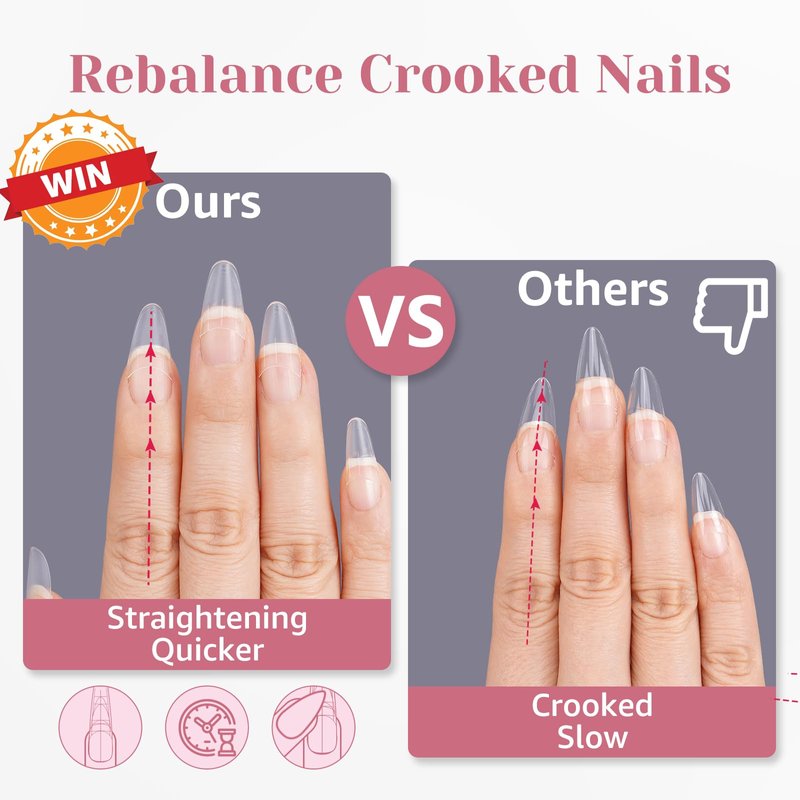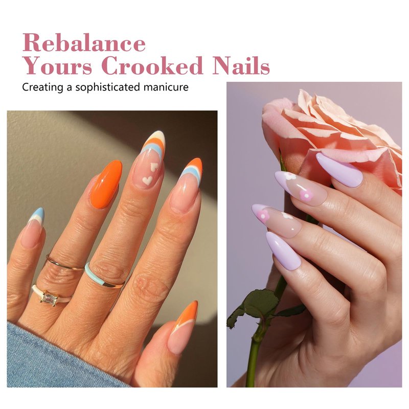 Upgraded almond nail tips with positioning line can help you directly align center line with the knuckle line, rebalance your crooked nails and give you perfect nail shapes!