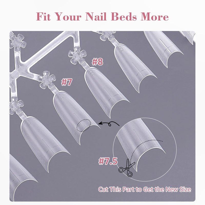 - More Fitting Width for Your Nail Beds: The crescent-shaped guide lines on the short nail tips nail tips make it easier for you to trim the back edges and obtain the appropriate size. This design on almond tips enhances accuracy and convenience during trimming, avoiding over-trimming or uneven cuts, and provides greater convenience and satisfaction for you on manicure experience.