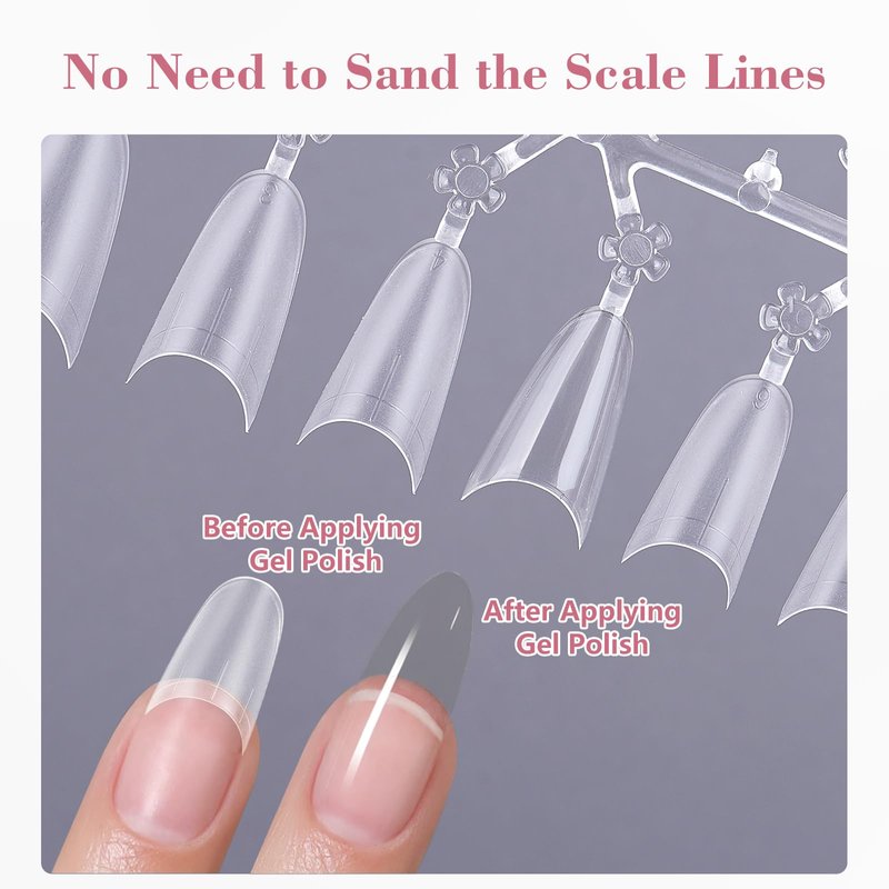 - Precise Positioning: LIONVISON almond nail tips with positioning lines that align directly with the knuckle line, allowing for quick and accurate positioning and fit the nail beds. Avoiding crookedness, offset or asymmetry, and more accurate and efficient when applying acrylic nail tips, allowing you to get a perfect nail shape!