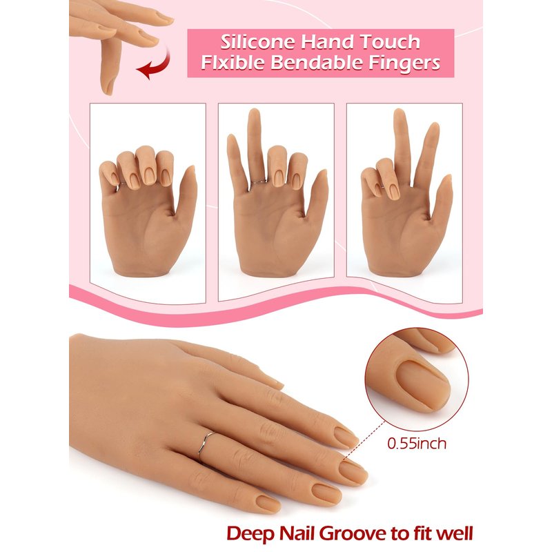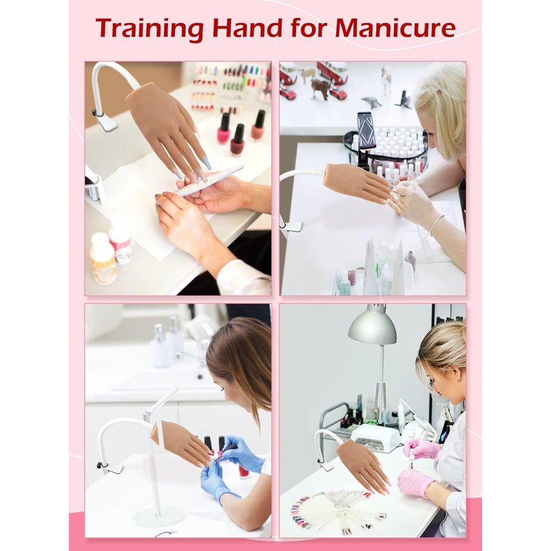 LIONVISON Practice Hand for Acrylic Nails, Silicone Nail Hand Practice, Flexible Fingers Fake Training Hand False Mannequin Hands for Nail Practice, Hand Model Kit for Nail Supplies Manicure Beginners
