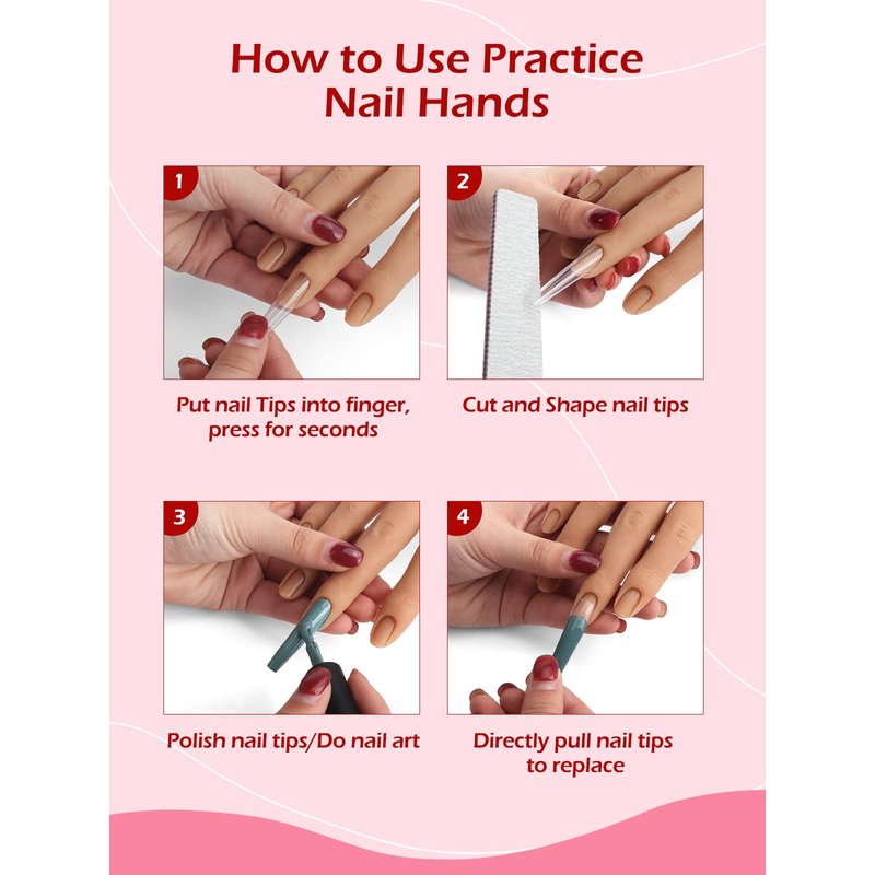 - 【Silicone Simulation Soft Touch】 This nail practice hand kit stand with bracket clamp and extra long coffin nails tips, is made of harmless liquid silicone rubber. It simulates the touch of human hands and skin lines, very soft and comfortable. It's easy to clean and reusable. The size and color of the training hand are also similar to human hands, allowing you to experience the realistic of nail art practice, especially suitable for nail art beginners to practice nail art tech.
