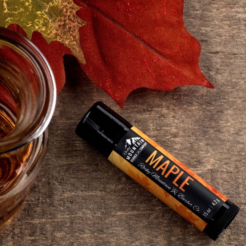 Lip Balm Set - 4 Scents - Maple, Vanilla Coffee, Peppermint, & Orange Brandy - No Shine Matte Finish - Featuring Coconut Oil, Avocado Oil, Bees Wax, & Shea Butter by Rocky Mountain Barber Company