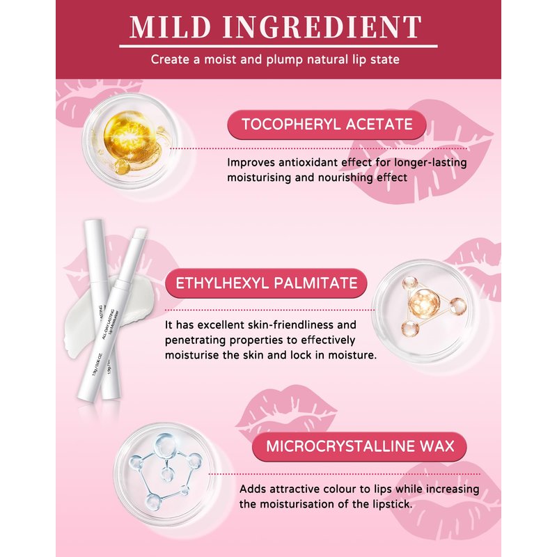 - Moisturizing Formula Lip Balm - Our lip primer contains mineral fat ingredients that quickly penetrate and effectively lock in moisture to reduce dryness and cracking problems, providing deep moisturization and keeping lips hydrated.