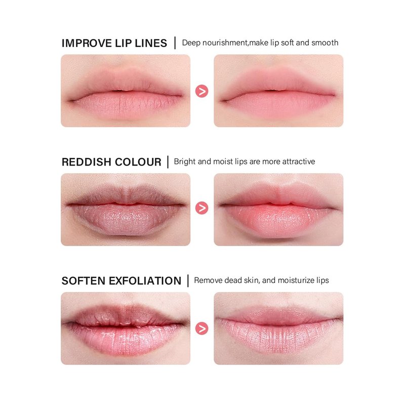 - Improve Lip Lines & Lip Color - Sleeping lip mask contains the function of moisturising the lip skin by using the sleeping lip mask to replenish the nutrients needed by the lip skin, moisturise the lip skin, improve the dryness of the lips, avoid the dryness and cracking of the lips to make the lips soft and elastic. Moreover, people with dull lip colour can use the lip mask to help lighten lip colour, relieve and lighten lip lines, and create their own doe lips.