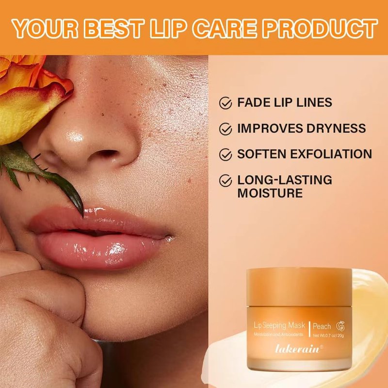 Lip Sleeping Mask,Night Lip Mask With Vitamin C, Antioxidants,Lip Mask Overnight,Improves Dryness,Nourishes and Hydrates,Brighten Lip Colour,Reduce Lip Lines 0.7 Oz. (peach flavour)