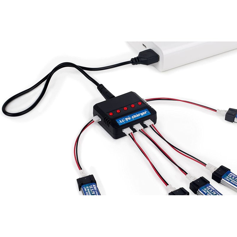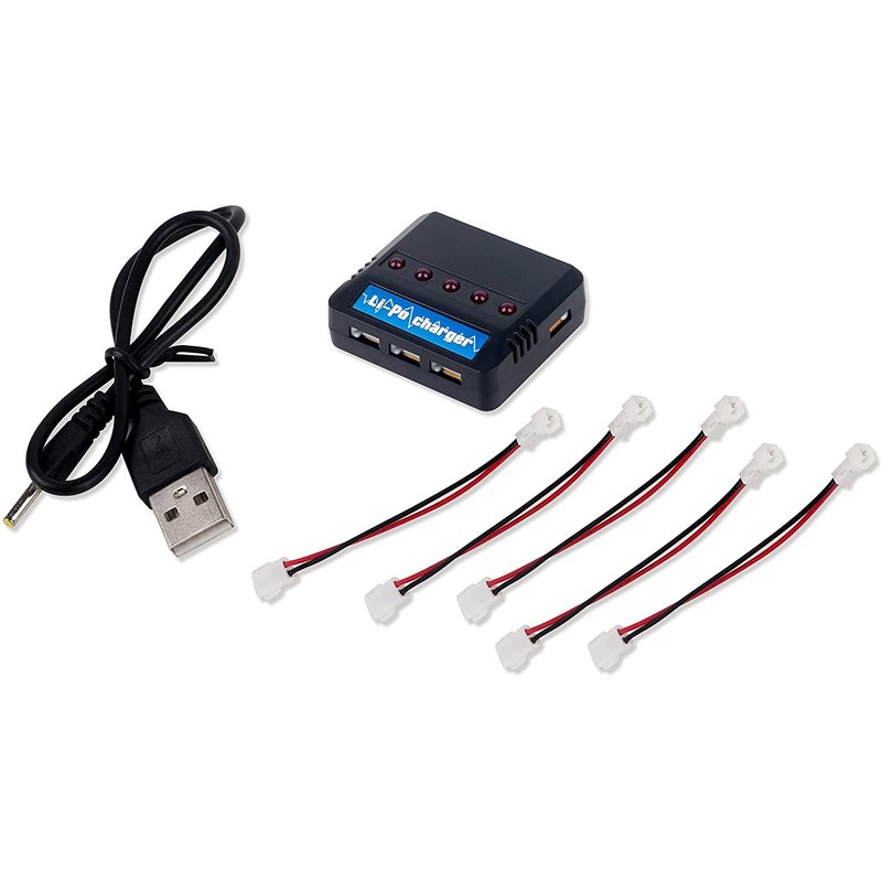 Lipo Battery Charger DC 3.7V 1S 1 Cell RC Charger Micro 5 Port Compact Charger with LED Indicator Mini Size Lipo Charger 5 in 1 USB Lipo Charger