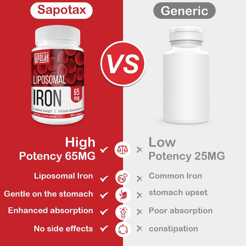 - Enhanced Absorption Formulation: Iron supplement is designed for high efficiency and based on liposomal technology, absorption of liposomal gentle iron is 3.5 times higer than ordinary iron pill, 4.1 times higer than ferric gluconate,2.7 times higher than iron sulfate, and 5 times higher than ferrous fumarate.Therefore the liposomal iron for iron deficiency is easily absorbed through the cell membrane getting more iron into your cells making it to be perfect iron supplements.