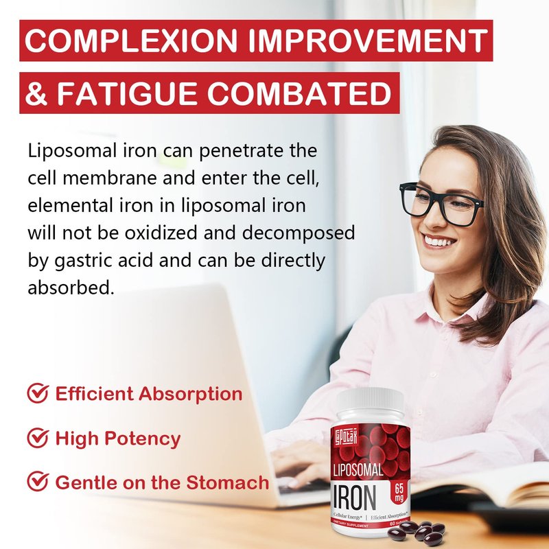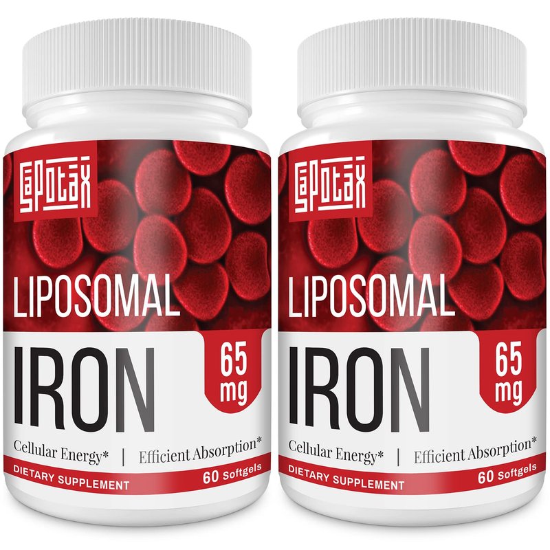 Liposomal Fe Iron Supplement for Women,65 mg Iron Supplements with Folic Acid & Vitamin B12 for Men,Red Blood Cell Production,Energy Support for Adults Iron Deficiency 60 Softgels(2 Bottle)