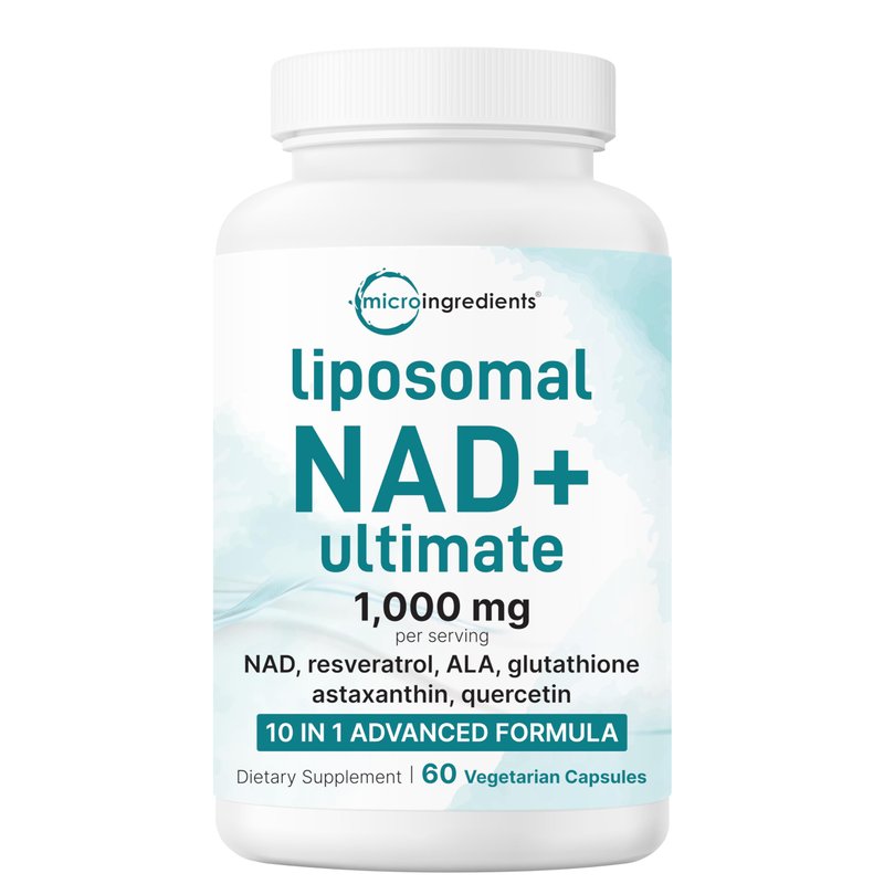Liposomal NAD+ Ultimate 1,000mg | 60 Veggie Capsules | 10-in-1 with Resveratrol, ALA, Glutathione, Astaxanthin, & Quercetin | NAD Supplement for Women & Men | Anti-Aging, Energy, & Brain Support