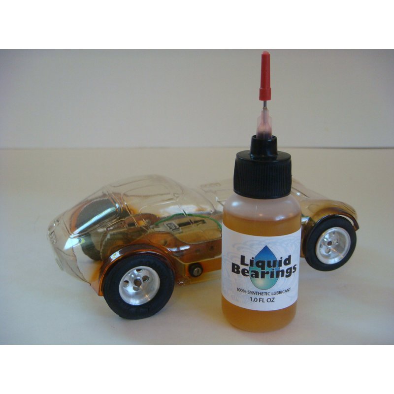 This is the synthetic lubricant that consistently outperforms all others currently available. It has incredible low and high-temperature characteristics, which is absolutely necessary for proper slot car lubrication but completely lacking in petroleum-based oils. Don't use them on your slot cars any longer! Actual oils and lubricant sprays leave sticky deposits when they evaporate over time. Real oil is made up of a mixture of long and short chains of carbon and hydrogen atoms, and under certain conditions the short-chain molecules evaporate, and the unstable molecules oxidize and break down. This leaves a sticky residue which can actually "gum up" the device it was intending to lubricate. Conventional oils also contain impurities such as sulfur, waxes, and unstable hydrocarbons which are left behind as residue deposits. In contrast, synthetic oils are made using a process that re-arranges the structure so all the molecules are uniform in size, shape, and weight, an ideal phenomenon which does not occur in nature. Synthetics are custom-designed to produce the ultimate lubricant, with inherent performance characteristics vastly superior to any petro-oil. Liquid Bearings is also essentially odorless, so your hands and clothes won't smell like oil after using it. It is perfectly safe to begin using Liquid Bearings on all your slot cars immediately, even if you have been lubricating them with conventional oils for years or decades. It is fully compatible with all vintage and current oils, and will eventually flush away the residue of the evaporated real oil over time. You will easily notice that your slot cars run faster and quieter with Liquid Bearings, especially if you have been using petroleum-based oil on it for years. It is completely plastic-safe, and will not harm painted surfaces. The bottle is top-quality LDPE, and the stainless needle allows the application drop-by-drop.