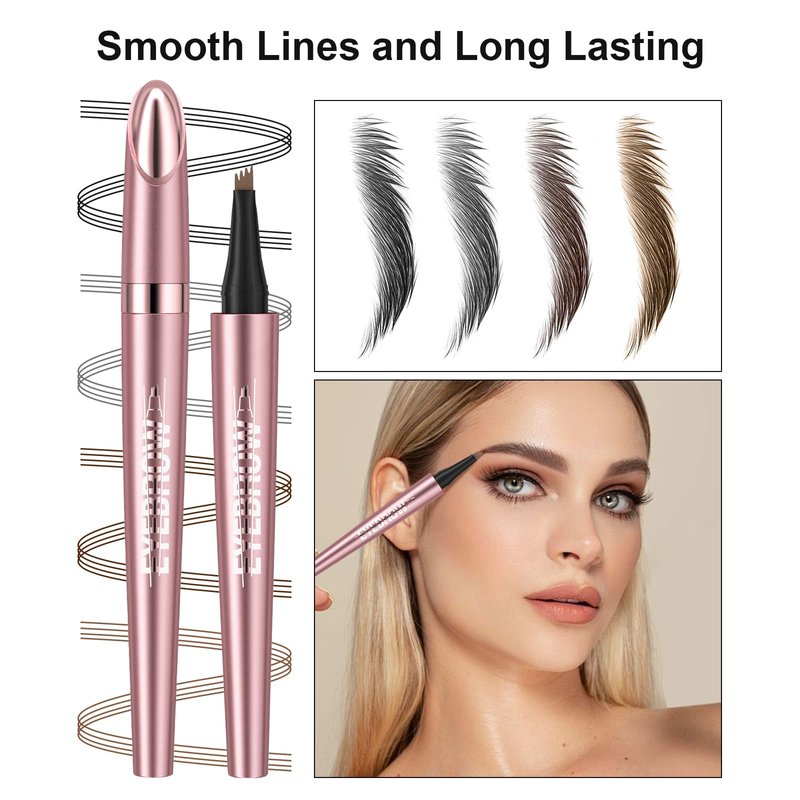 Liquid Eyebrow Pencil with Four Forks, Split Design, Water And Sweat Resistant, Smooth And Natural Eyebrow Shape (Brown)