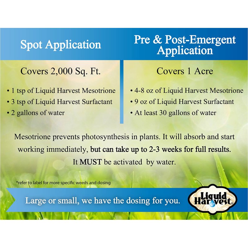Liquid Harvest Mesotrione - 8oz - Mesotrione Concentrate (Compare to Tenacity) - Pre and Post-Emergent Weed Killer for Lawn and Turf Grasses