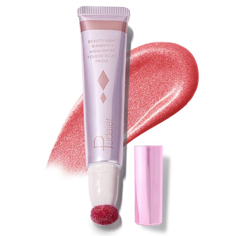 Liquid highlighter beauty wand, lightweight, hydrating, blendable for natural stereoscopic look.