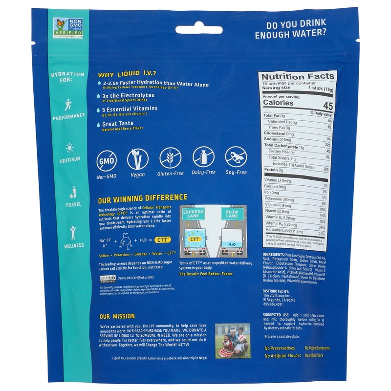 LIQUID IV Acai Berry Hydration Drink Mix 16 Count, 16 GR