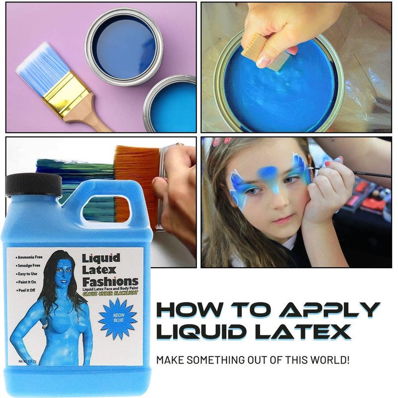 Liquid Latex Fashions- Ammonia Free Natural Face paint for Kids and Adults, Ideal for Artwork, Party, School Plays, Cosplays and Concerts, Neon Blue- 8 oz