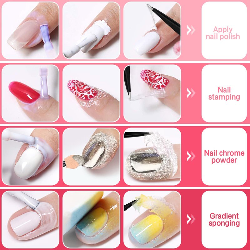 - 30ML MAKES A GREAT VALUE: DR.MODE liquid latex for nails set includes a bottle of 15ml white nail latex, a bottle of 15ml pink nail latex and a stainless steel tweezers. Cuticle barrier is a geat tool for creating various nail art style like nail polishing, stamping, marbling, gradient sponging, chrome nails, etc.