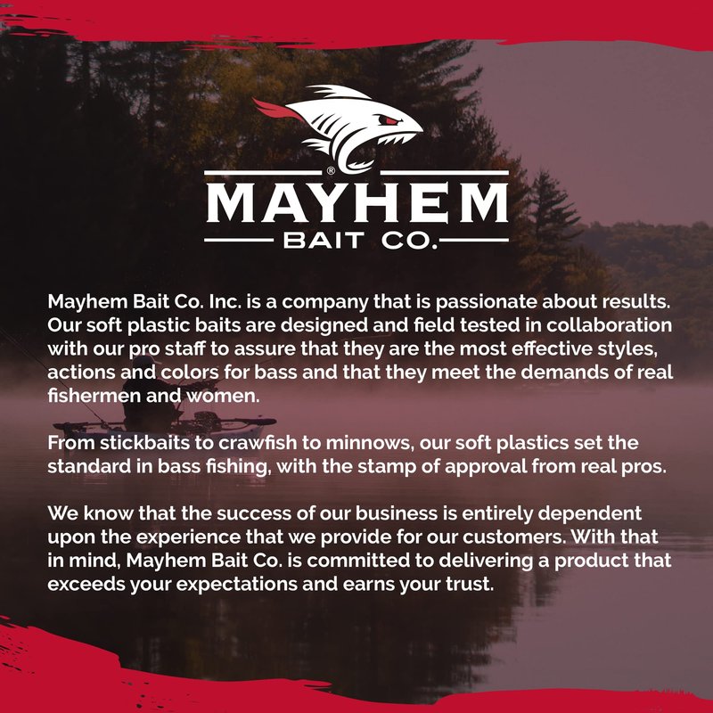 Whether you’re a first-time angler or a tournament pro, Mayhem Bait Co. has fishing gear you can rely on to help you land the perfect catch. We take a multifaceted approach to our products by focusing on the scent of our bait, the sustenance of your target species, the staying power of our bait scents, and the strength of our products. Rely on our tackle gear and attractants to help create the ideal fishing experience every time you go out on the water.