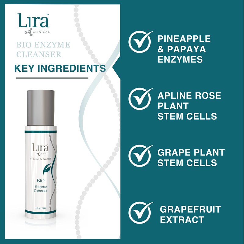 Lira Clinical Bio Enzyme Face Cleanser - 6 oz - Brightening and Anti Aging Face Wash with Plant Stem Cells